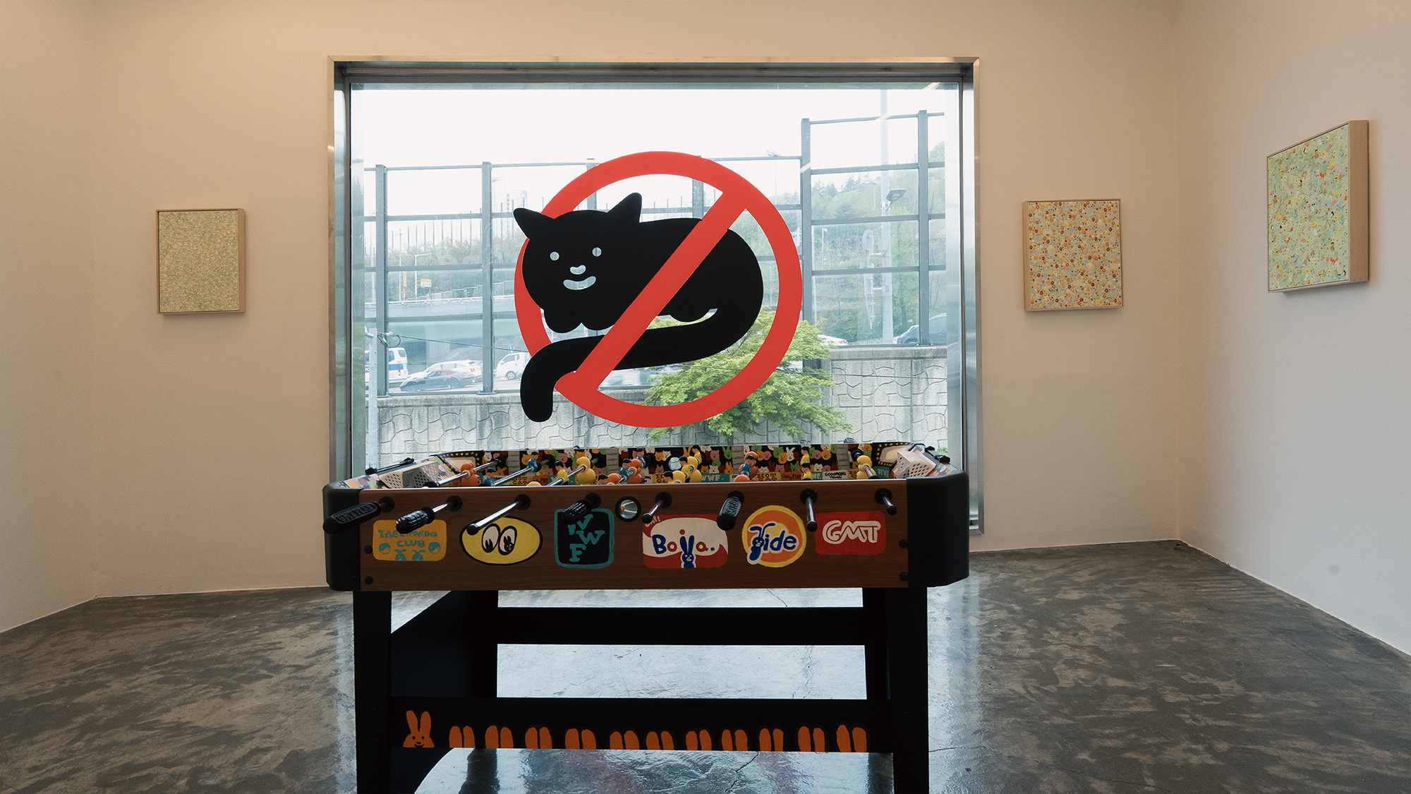 The second floor is where the series began, with Boila hiding in the sunflowers. Armed with a cuteness that will make young and old alike smile, he hides in the sunflower with his petal-like ears sticking out. The three-dimensional wooden sculpture allows visitors to move it around to discover him. In addition, the artist filled the large walls and windows with murals, creating a large space that is not just an artwork, but a large space. This is an attempt to expand the scope of his work to a new challenge, moving away from small canvases or tattoo designs. Goodmorningtown hopes that visitors will enjoy the works as they are, and that they will have fun and laugh as they discover the hidden Boila throughout the exhibition.