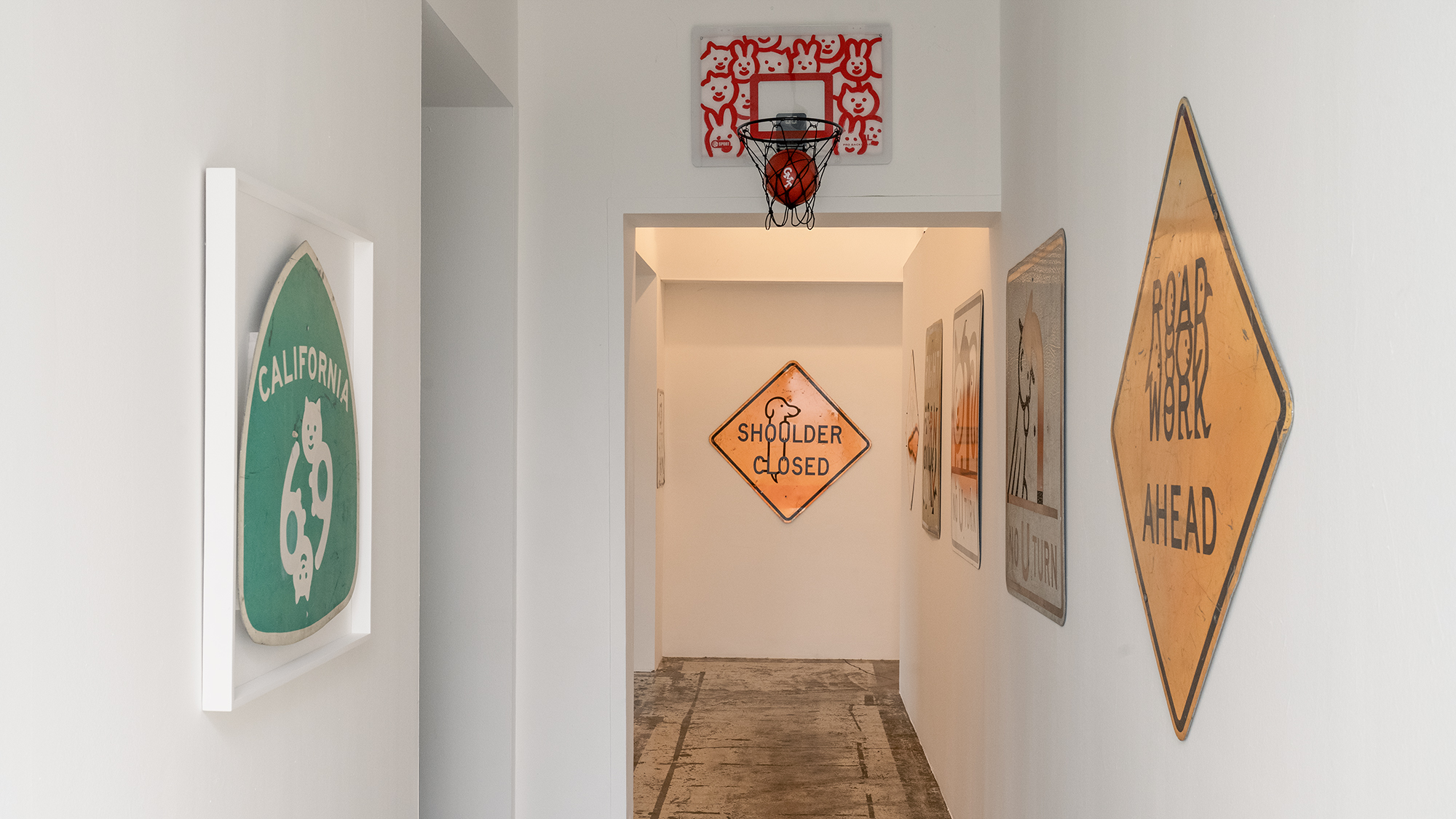 In another room on the second floor, Morika is secretly hiding in a tote bag. The cat tower, the cat's scratch marks, and the cat's meow are all part of Morika's room, decorated by the artist himself. Goodmorningtown hopes that visitors will enjoy the artwork as it is, and have fun and laughter as they discover Boila and Morika hiding throughout the exhibition.