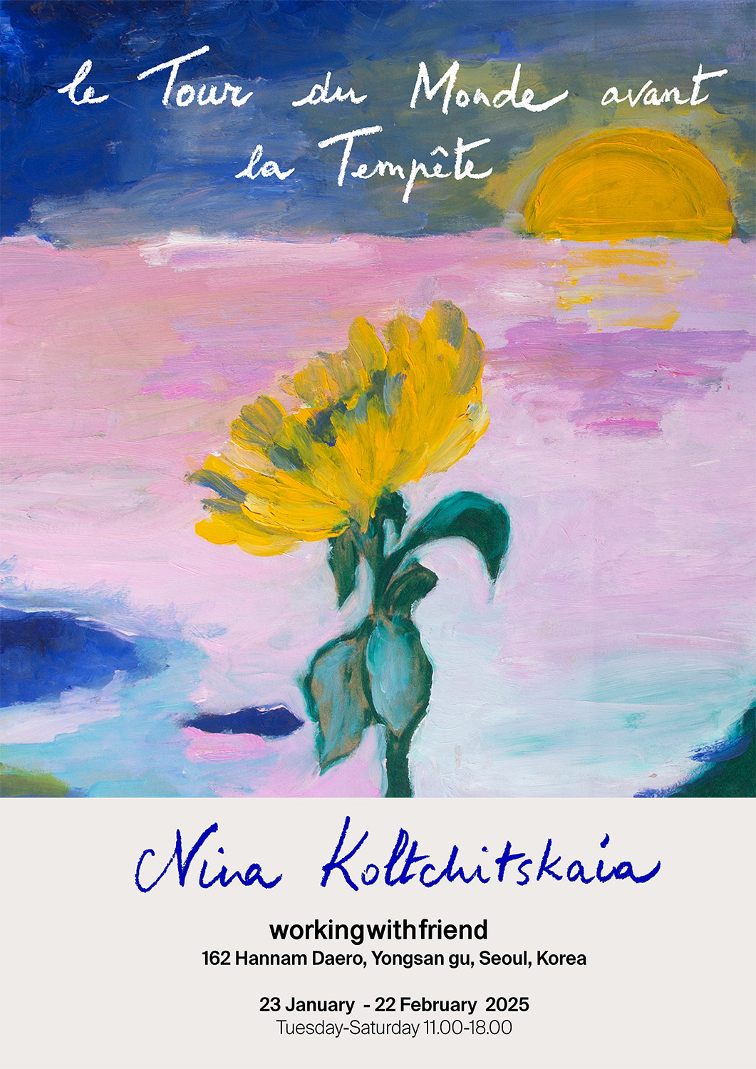Nina Kolchitskaia is a painter and photographer born in Moscow, who has lived in several countries and is currently based in Paris. Since childhood, she has used various tools to express her emotions, starting with photography and expanding to fashion, drawing, and poetry to draw her own world. Recombining scenes from her daily life and dreams to immortalize them on canvas, her work is beloved for its romantic colors and dreamy atmosphere. This is her first solo exhibition in Korea, which she has been preparing for since 2021.