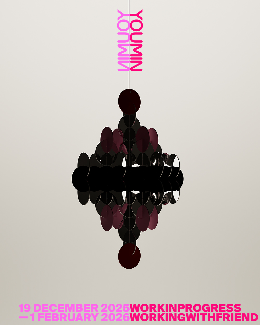 Work in Progress marks the first comprehensive solo exhibition of designer and artist Youmin. Having created a wide range of spaces, objects, and furniture, he now presents his practice within the very environment he designed for Working With Friend. Rather than focusing on finished results, the exhibition reveals the ongoing processes, adjustments, and formal explorations that have shaped his work over the years. Youmin’s practice begins with form and function, gradually expanding into new spatial experiences through colour, light, reflection, and balance. Structural motifs drawn from exercise equipment, the clarity of forms found in his furniture and objects, and his long-standing exploration of mirrors all play central roles. For him, the mirror is not merely a reflective surface; it is a visual device that prompts us to look again. Through reflection, layering, symmetry, and distortion, familiar structures are reinterpreted, giving his work its distinct rhythm and depth. This exhibition brings together the visual language he has developed over many years, presenting it as a coherent, evolving context. Bold yet controlled colour combinations, restrained structural forms, the interplay of planes and lines, and spatial expansion through reflective effects all represent consistent threads within his practice. The title Work in Progress encapsulates his approach: forms remain unfixed, meanings continue to shift, and the work moves steadily into its next phase. What is shown here is this ongoing state, laid bare. The exhibition carries special significance in that it takes place within the Working With Friend space he designed himself. Here, space and work do not exist as separate elements; they form a single structure that has grown in tandem, influencing and reinforcing one another. The result is an experience in which his works breathe most naturally, situated within their original conceptual environment. Youmin trained at the Seoul Arts High School before studying sculpture and design at the Pennsylvania Academy of the Fine Arts and ArtCenter College of Design. His diverse practice across furniture, spatial design, lighting, and objects connects the act of making with the act of looking, continually proposing new sensory and spatial experiences. Work in Progress presents the trajectory of his sustained experiments and inquiries as a single unfolding scene. Rather than encountering completed objects, visitors find themselves within the evolving process, meeting the work exactly as it exists now—shifting, growing, and still in motion.