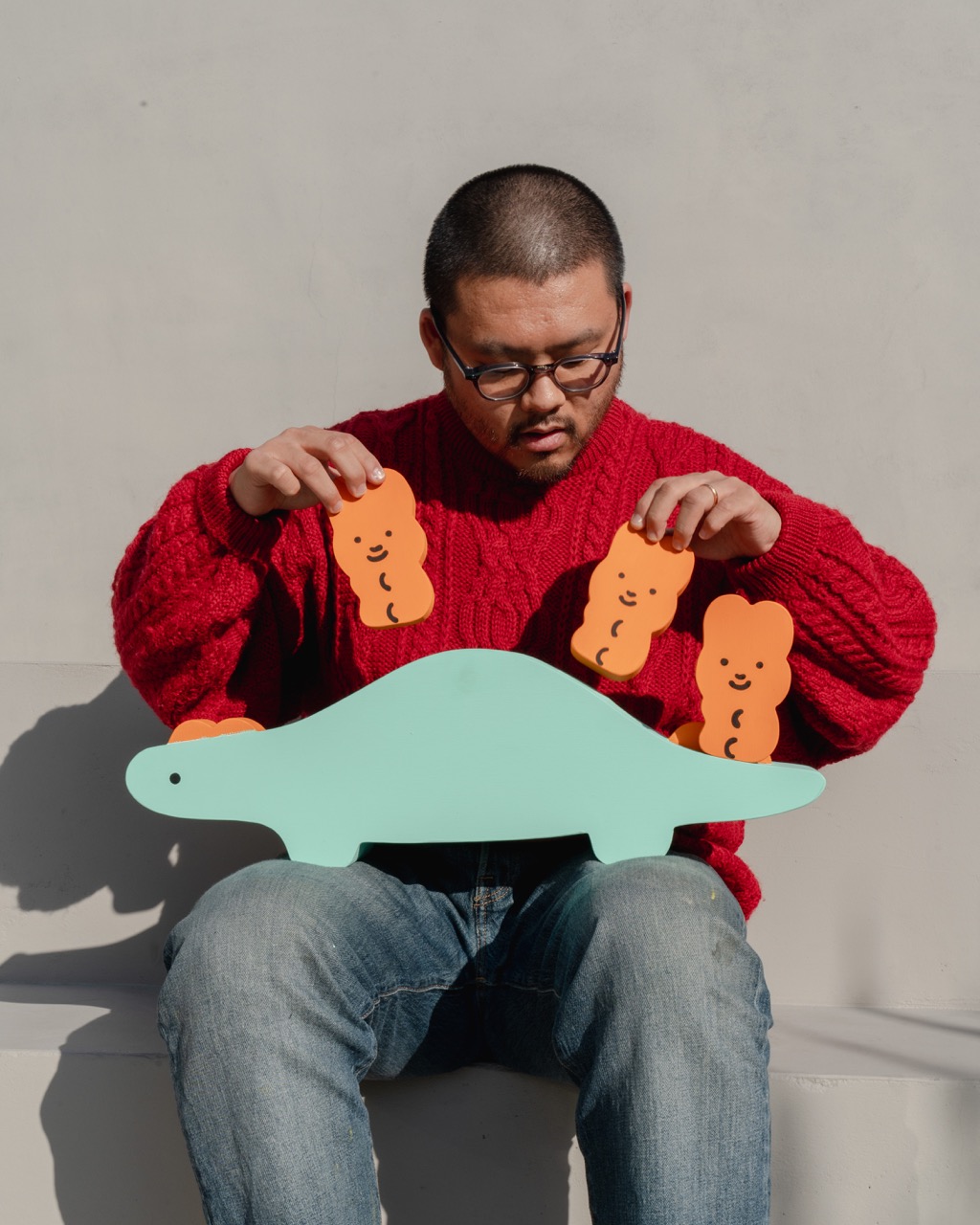 1층에는 이번 전시에서 처음으로 선보이는 작가의 동화책과 공룡 오브제들이 전시된다. 6-7년 전, 꽃잎의 형태에서 토끼의 귀를 연상한 작가는 사물들에 숨어 있는 모양들을 발견하기 시작했다. 우리의 일상 속에 몸을 숨긴 토끼들을 찾아 수집했고, 하나 둘 모인 장면들은 한 권의 책으로 탄생했다. 숨어있는 보일라는 얼굴은 꼭꼭 숨겼지만 길고 퐁신한 귀를 쫑긋 내세워 마치 자신을 찾아달라는 것처럼 존재한다. 아이의 작은 이, 오리의 부리, 공룡의 뿔처럼 미처 생각하지 못했던 곳까지 있는 보일라를 직접 찾아보며 작가의 유쾌한 시선을 느낄 수 있다.